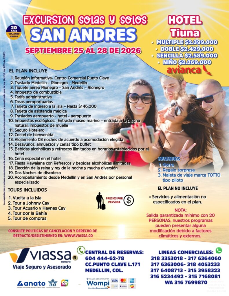 - Tiquete aéreo Rionegro – San Andrés – Rionegro